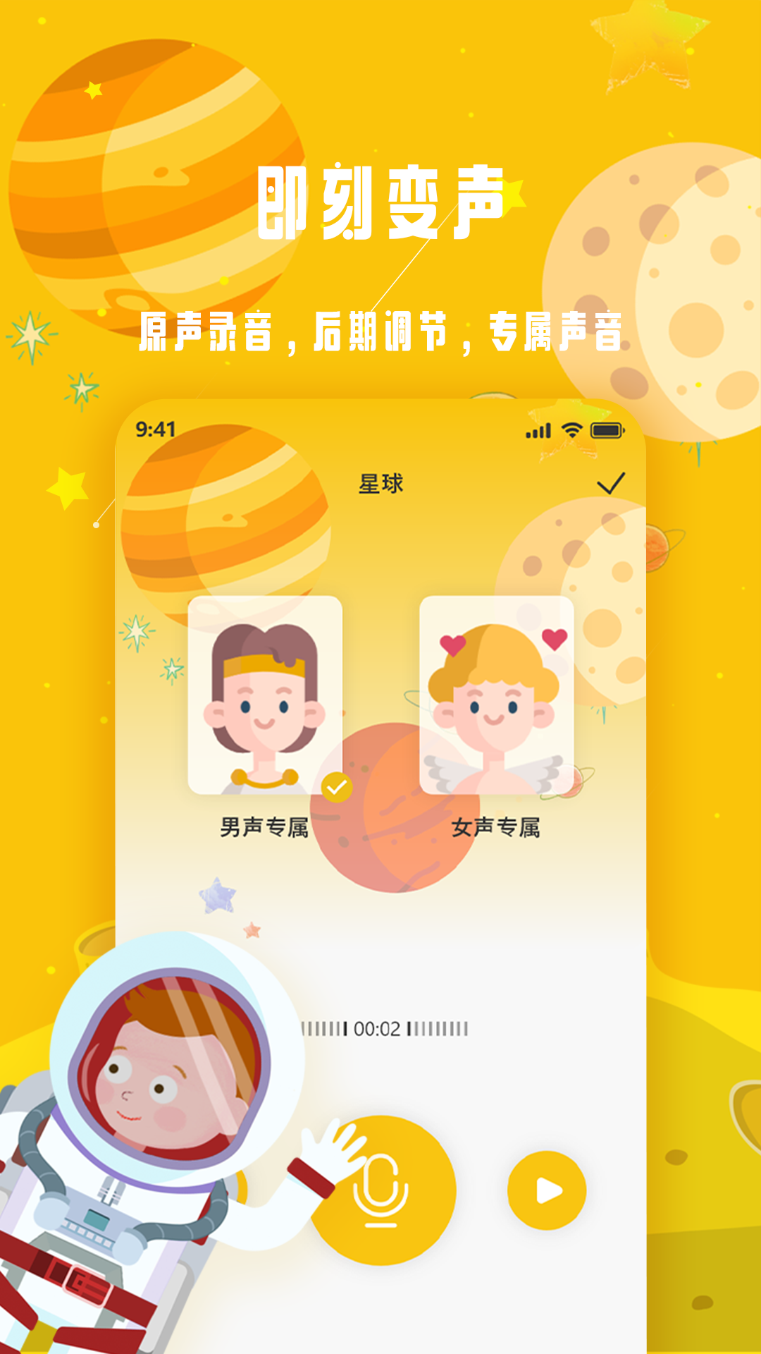 变声星球,一款拥有多种变声音效的app,海量录音特效丰富又好玩,采用全新变声算法来调整音色,果音高,基频,系统预设包括小男孩,小女孩,男女青年,男女中年等变声音效,变声效果丰富自然。
