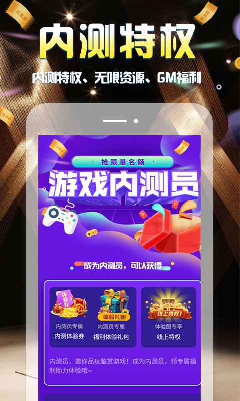-删档内测、热门游戏抢先玩,福利应有尽有;