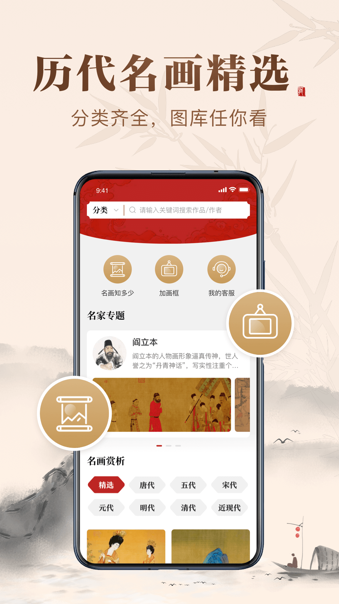 历代名画集APP是一款面向喜爱中国传统文化,对中国绘画和书法感兴趣的APP。精选收录了从晋朝到近现代的书画名家经典传世作品。图片高清真实,色彩准确、绢丝可见,作品分类清晰。作品解析详尽可充分感受深厚的文化底蕴。设置名家专题,赏析名家画作的同时,了解画作背后的故事,画家的绘画风格和生平历程。