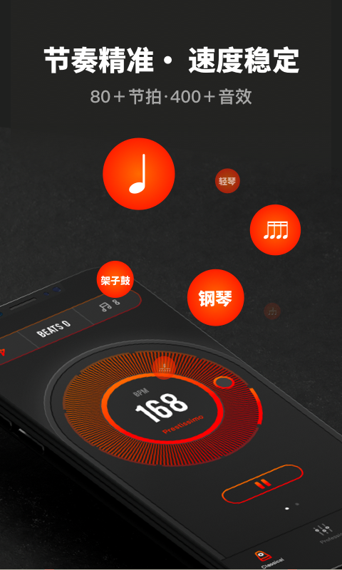 音乐节拍器,一款功能丰富,操作简单的专业节拍器APP!是专为音乐爱好者研发的节拍节奏学习软件,适合作为钢琴吉他等乐器学习的陪练工具,让你更快地掌握乐器练习的技巧。