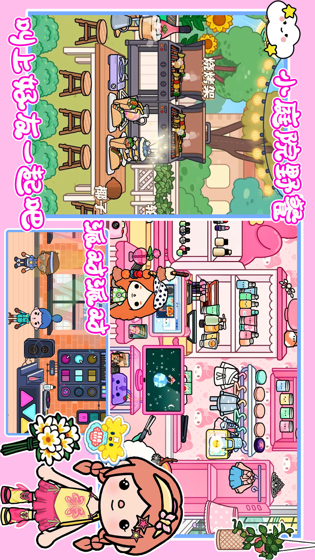 我们设计了多个场景和角色。你可以在理发店做好看的发型,在服饰店换上美美的服装和出彩的妆容!同时配有先进的技术沙龙可享受SPA!如果你觉得累了,你可以驾驶可爱的小汽车开到海边放松自己,那里还有丰富的美食等着你!