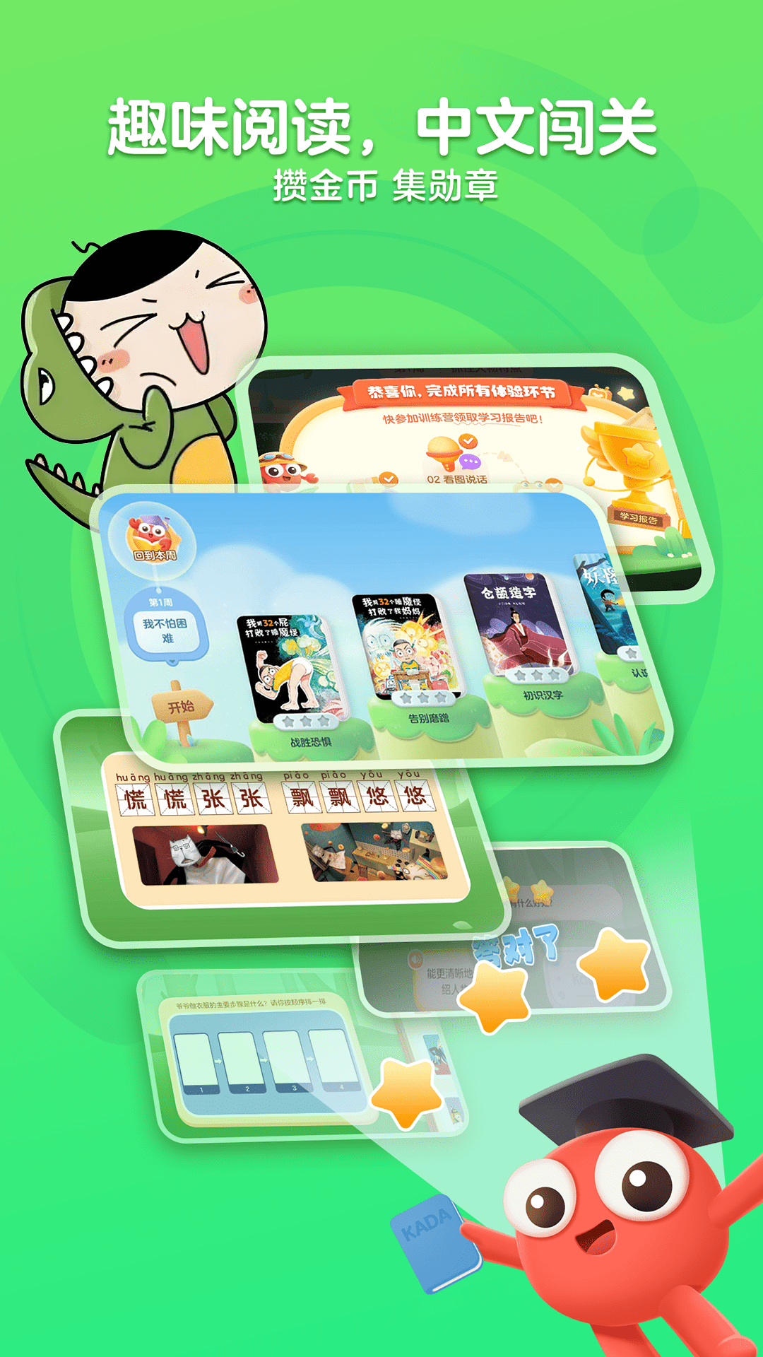 1、KaDa阅读名著精讲:精选经典绘本名著,引导孩子带着问题出发,阅读中互动学习,阅读后巩固练习,实现阅读的输入—思考—输出闭环。每周4本书,每天20分钟,阅读超能力提升;
