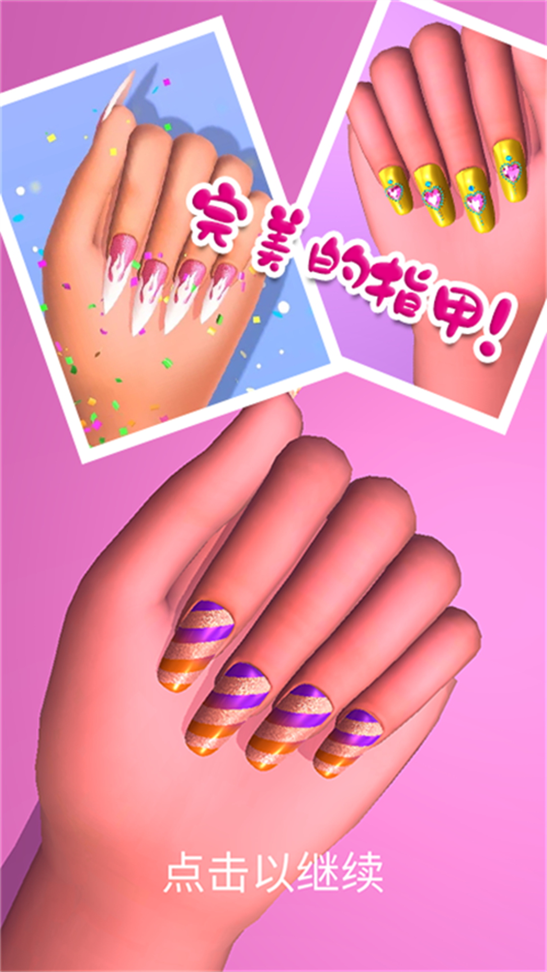 可以试用漂亮公主美甲指甲油、闪光、水晶、贴纸、图案!