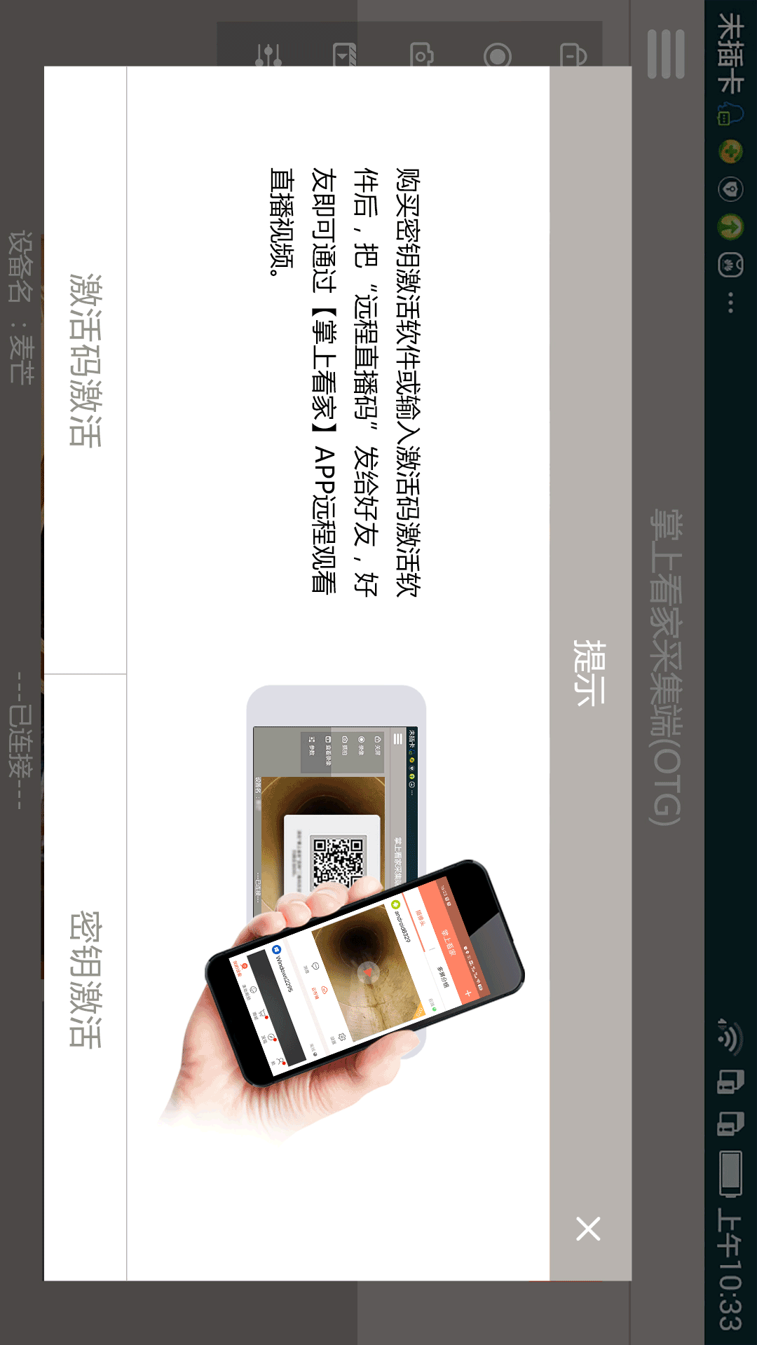 2. 在已连接usb摄像头的手机上安装”OTG版采集端”,使用激活码激活软件;
