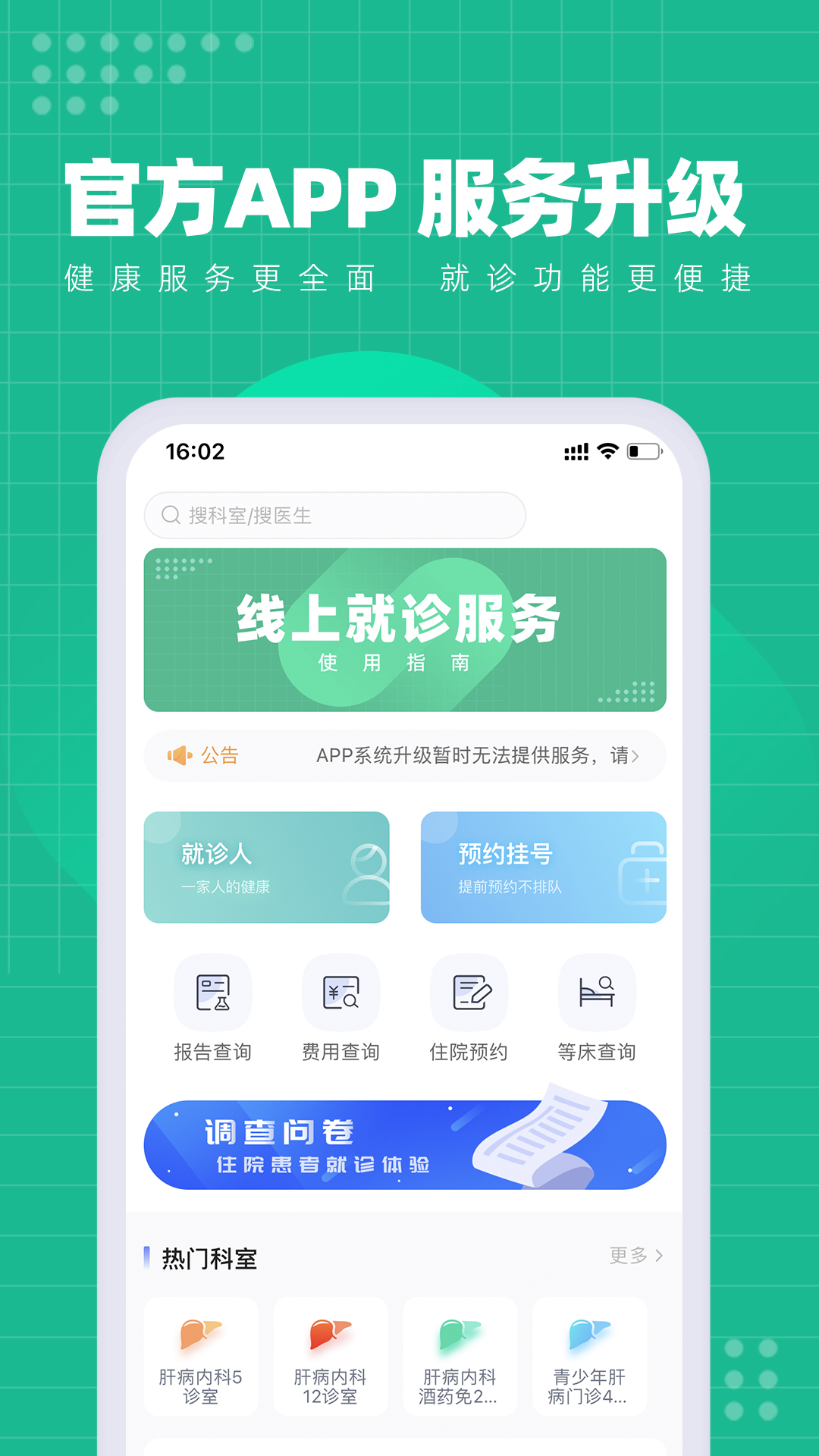 官方的更便捷,足不出户完成 *预约挂号、报告查询、住院预约、等床查询* 等线上就诊服务。院内院外,全流程就医实时查看,排队进度一手掌握。