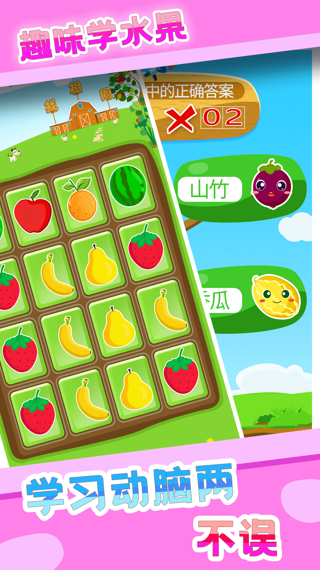 这是一款非常受宝宝欢迎的水果为主题的儿童益智。让宝宝爱不释手,在认识很多常见水果之余还能培养宝宝的逻辑和记忆等多种能力。