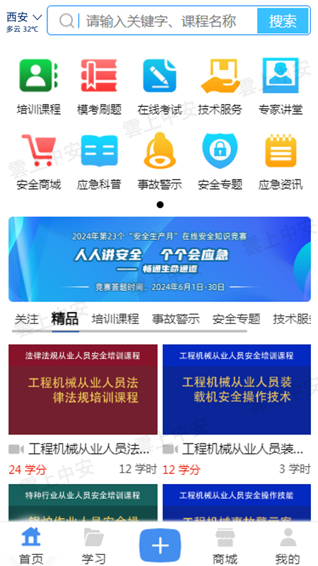 《雲上中安》在线安全培训APP提供各行业安全培训课程12000多学时,各类安全应急预案、安全科普、安全专题、警示教育3500多条,并且实时更新,同时设置了线上线下互动的“培训通知”、“精品课程”、“线上考试”、“线下实操考核”、“继续教育”等栏目,彻底解决企业安全培训“工培矛盾”,高效率、智能化的提高从业人员安全意识,掌握必需的安全操作技能,让一线人员在安全知识结构、学习能力范围内,对本岗位操作技能“学得懂、记得住、用得上”。