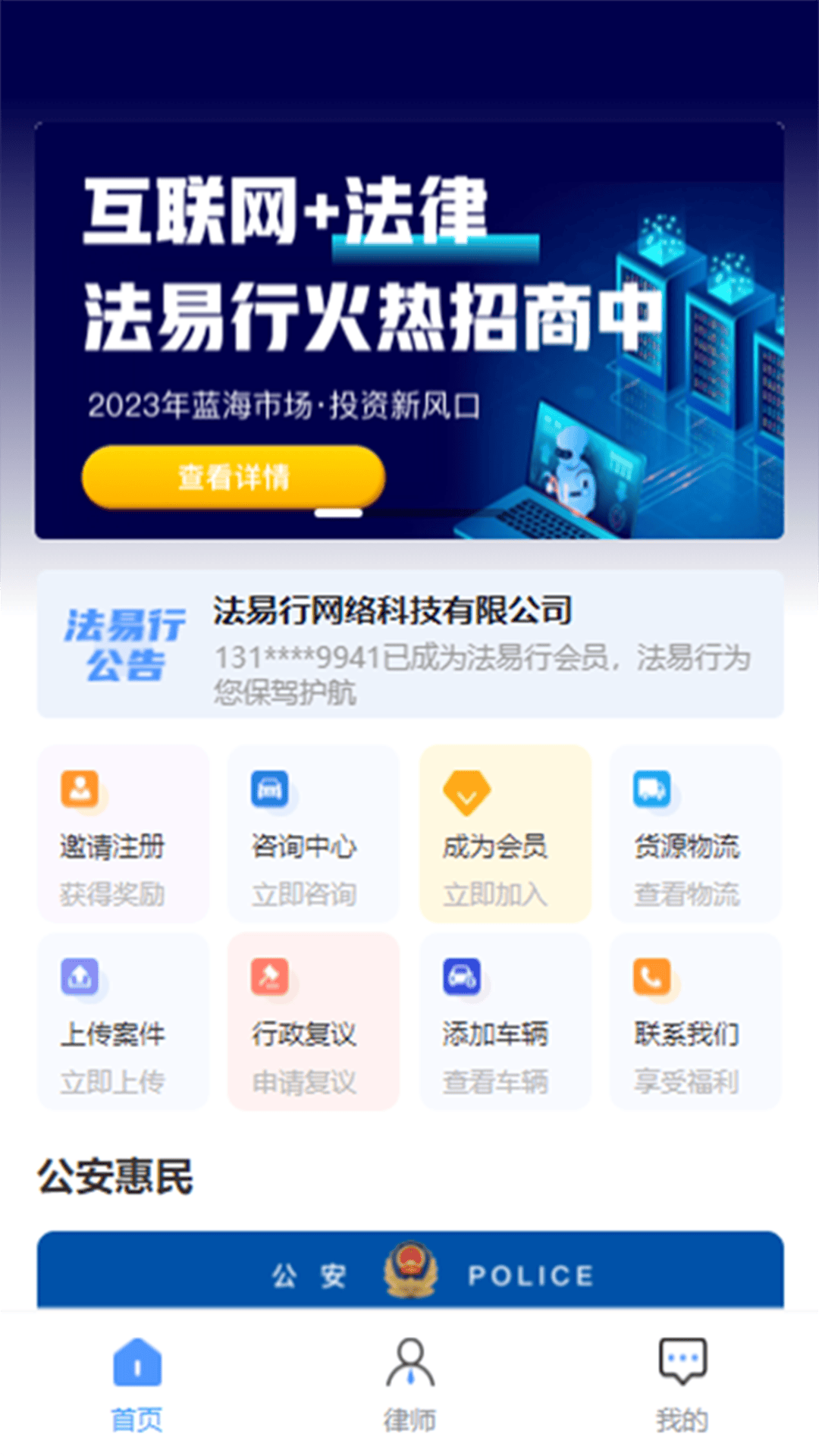 法易行APP电脑版致力于为车主提供全面的法律支持服务,在全国范围内针对不合理的行政处罚如罚款、查封等,指派律师免费申请复议;同时,在车辆发生事故等法律纠纷时,提供当地律师服务,无需额外费用,成为车主在异地的坚强法律后盾。