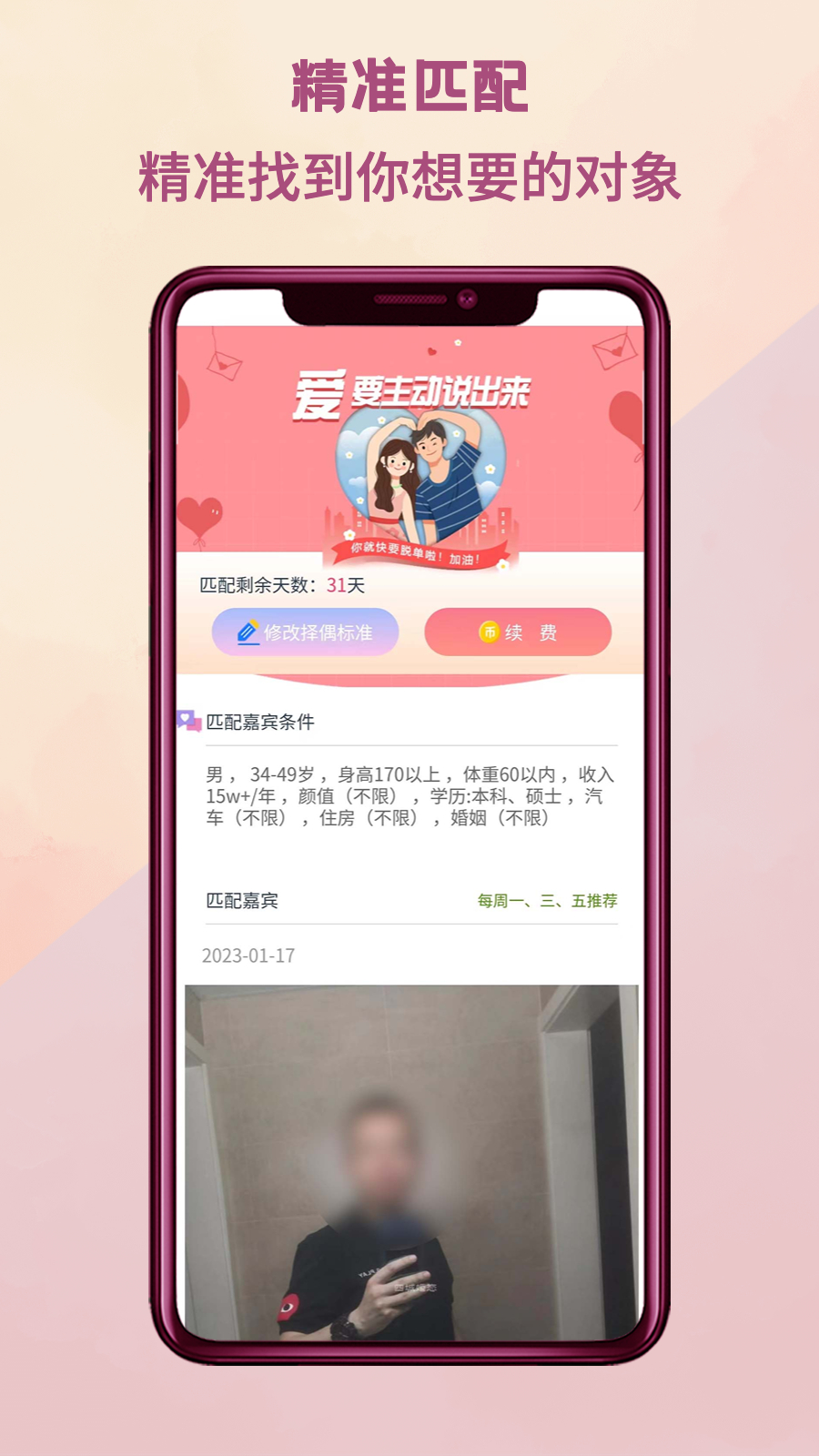 4、通过个人信息及择偶条件进行双向匹配,相亲成功率更高。