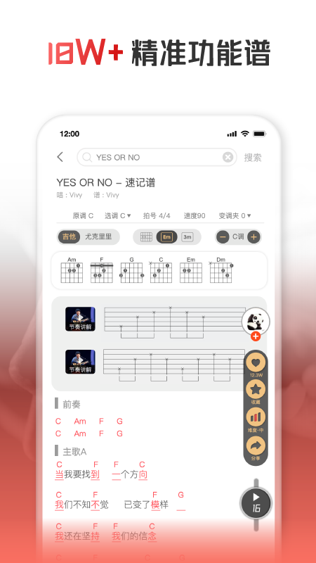 · 吉他谱,尤克里里谱,钢琴谱均能自由切换使用(海量曲谱资源)