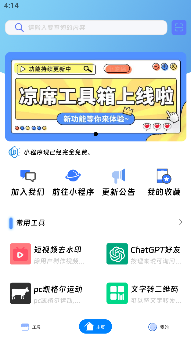 凉席工具箱电脑版介绍:凉席工具箱是一款集多种实用功能于一体的手机应用。它不仅可以帮助你快速去除图片水印,还可以进行凯格尔锻炼、文字转二维码、王者荣耀重复名检测等操作。此外,应用还内置了称呼计算器、翻译功能、设备信息查询、汉语拼音转换器、金额大小写转化等工具,满足你的日常需求。