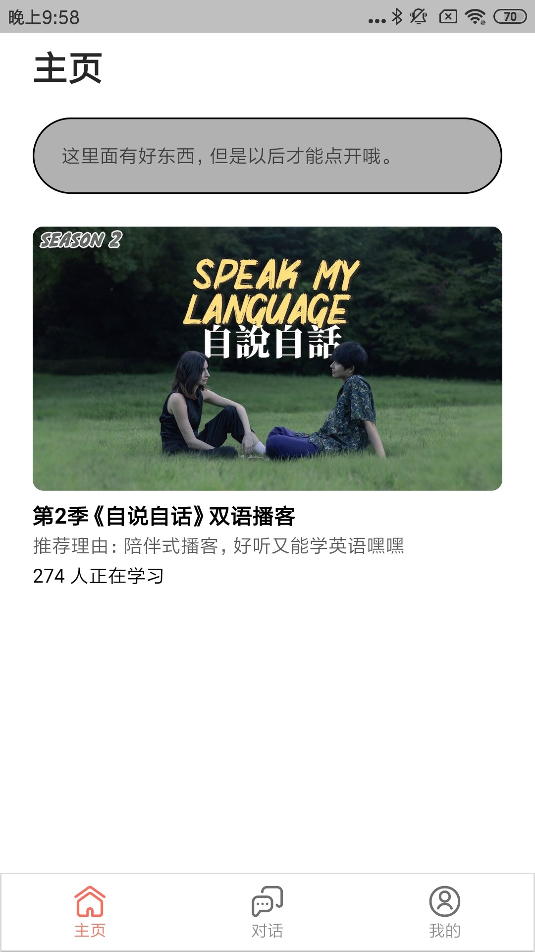 我们播客的另一个非常明显的特点,当然就是双语啦!虽然双方都只用各自的母语与对方进行交流对话是一种不同寻常的播客方式,但我们能真的做到完美无缝衔接。对于正在学习英文或者中文的人来说,可以通过自己熟悉的那门语言作为线索,跟上我们的对话内容和故事情节,来听懂我们自然语速下的双语对话。在我们的经验中,播客是学习外语的绝佳方式之一。并且,我们的播客还不会像普通的语言课那样枯燥而失去对学习语言的兴趣!请放心,虽然它可以成为很好的语言学习资源,但是我们不会穿插实质性的枯燥教学模式。虽然是 50% 的中文和 50% 的英文,但绝对是 100% 的自然流畅并且有趣的日常对话。如果碰巧中英文你都能听懂的话,那你完全可以把它当作你听的其他正常播客一样!