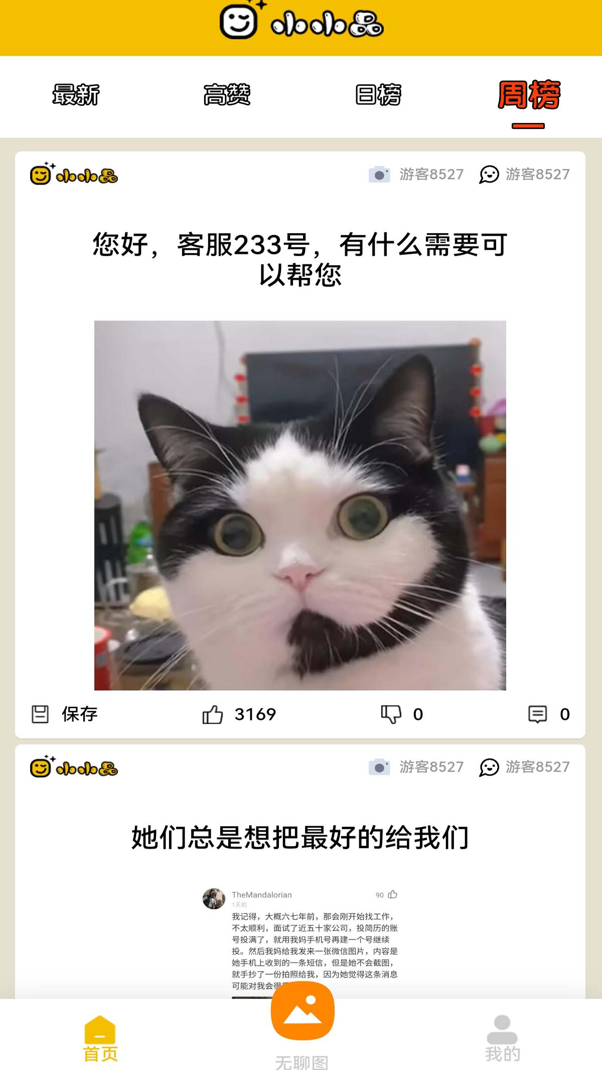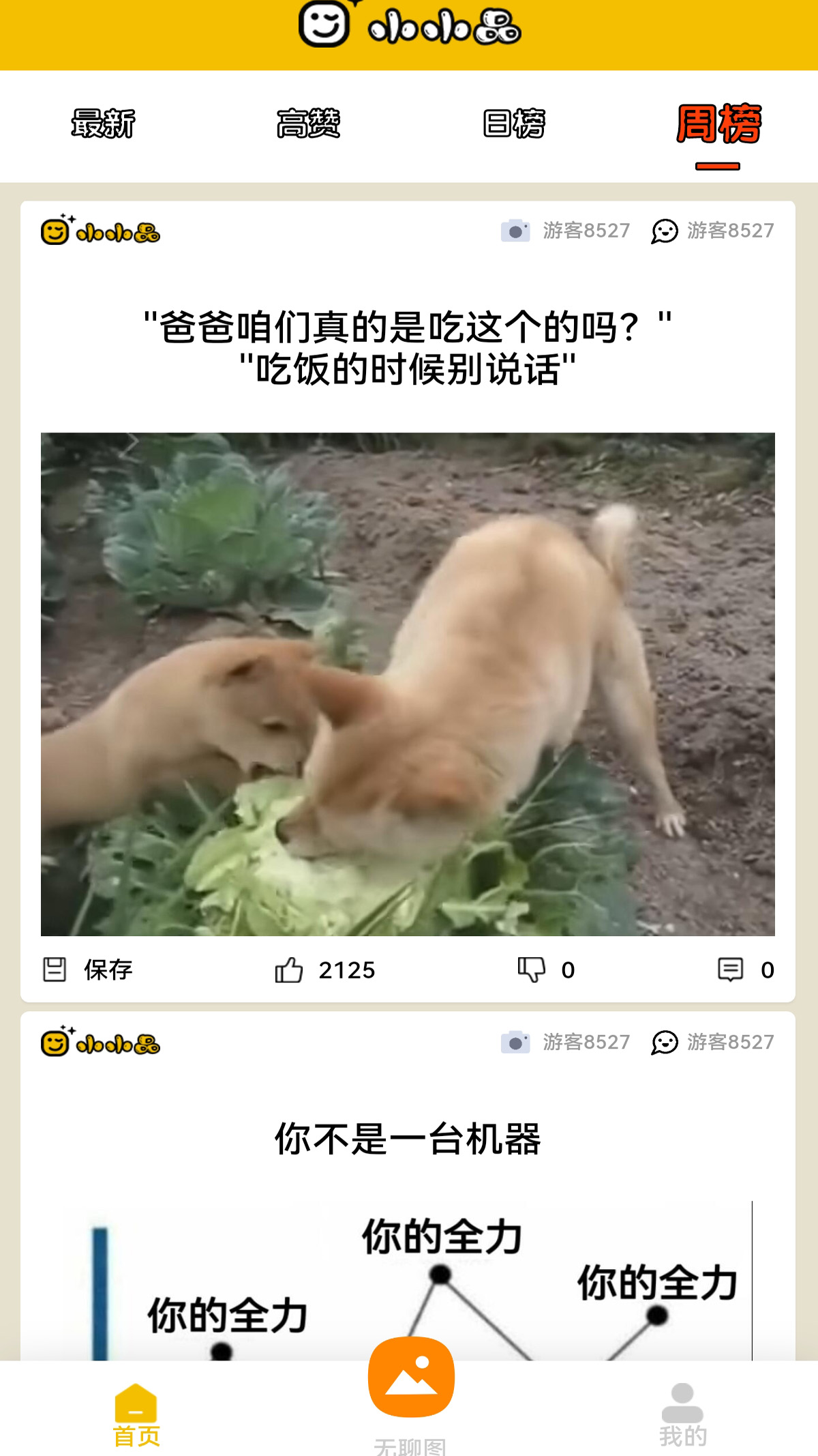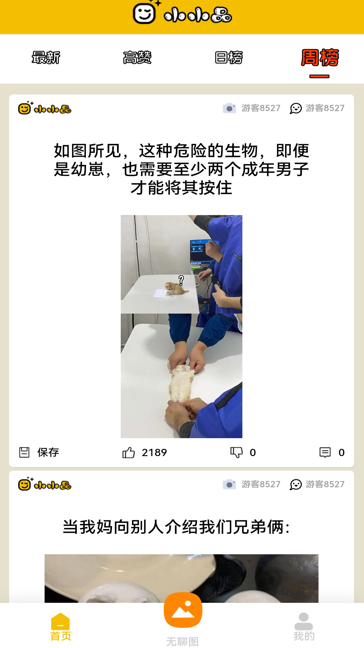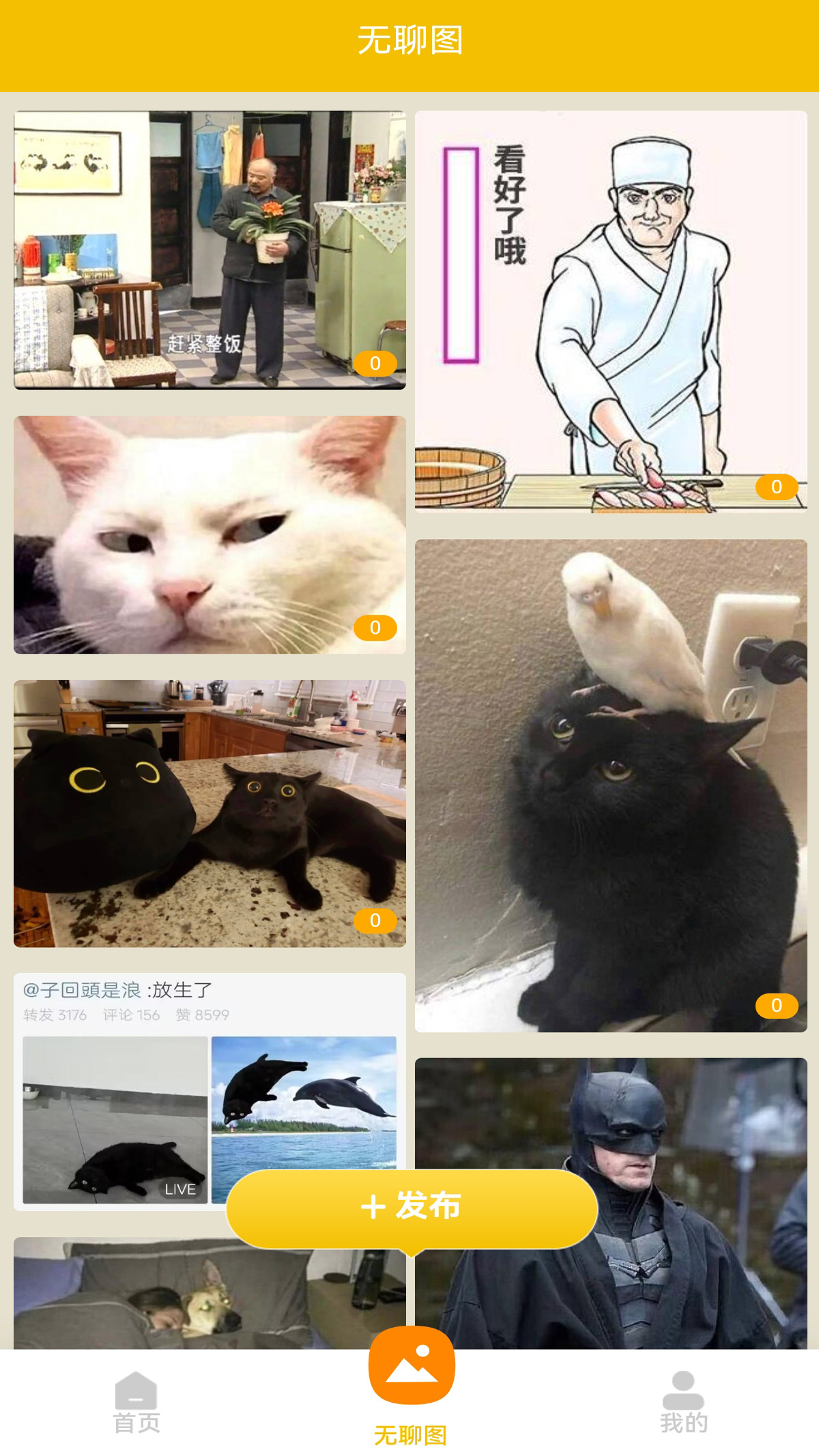 那么小小品既然以梗图为卖点,那么我该怎么玩呢?你应该已经看到了,首页展示的就是完整版的梗图。在小小品,一张梗图被分为两个部分,吐槽(梗)和无聊图(图片)。如果你有一张图片不知道该如何吐槽,不知道该如何配梗,那么你可以把它发布在无聊图板块。在无聊图板块,大家会集思广益,在这里大家一起吐槽(梗),并且给其他人的吐槽(梗)点赞。点赞高的一条梗会被推送到首页,一段文字一张图片终成为一张梗图。或者你也可以在无聊图里闲逛,在某一刻你突然灵感爆发,想出一条绝世好梗(类似神评论)。当你获得高的点赞,小小品也会在首页给大家展示,你也将获得巨大的满足感。每张图片只会有一条绝世好梗,追逐第一吧年轻人!