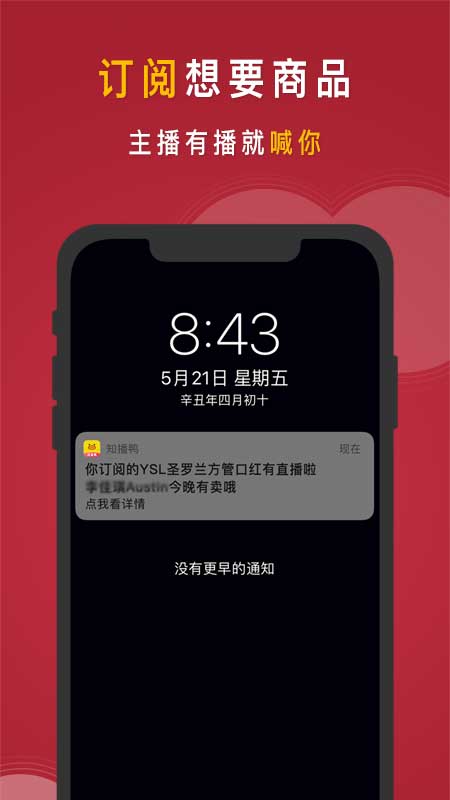 当主播开始介绍你心水的好物时,知播鸭会第一时间给你推送信息,既不会错过好物,又不用花整晚的时间蹲直播,简直太省事啦!