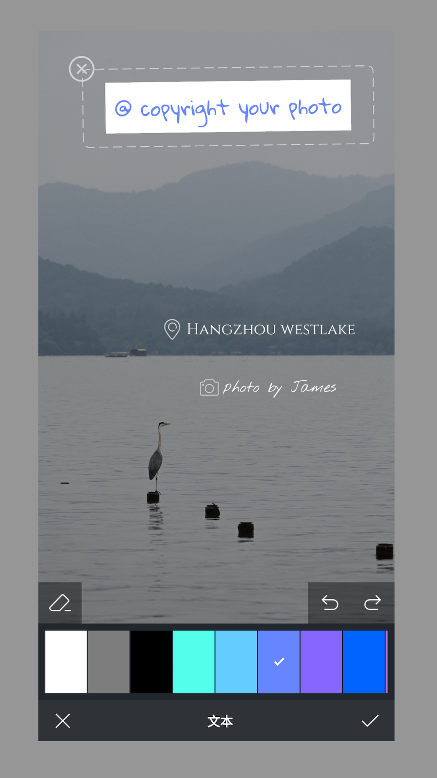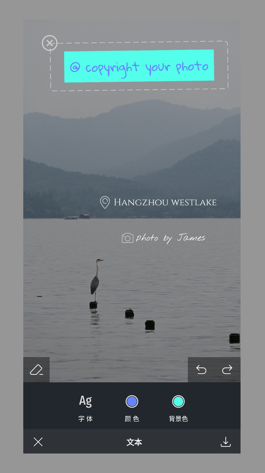 简单易用的图片水印工具,支持文本、贴纸、表情、场景模板、自由涂鸦等多种功能,文本支持自选颜色及数十种精美字体,贴纸和表情种类丰富,还支持自定义,可满足您对图片的各种水印需求,助您保护好自己的图片版权。