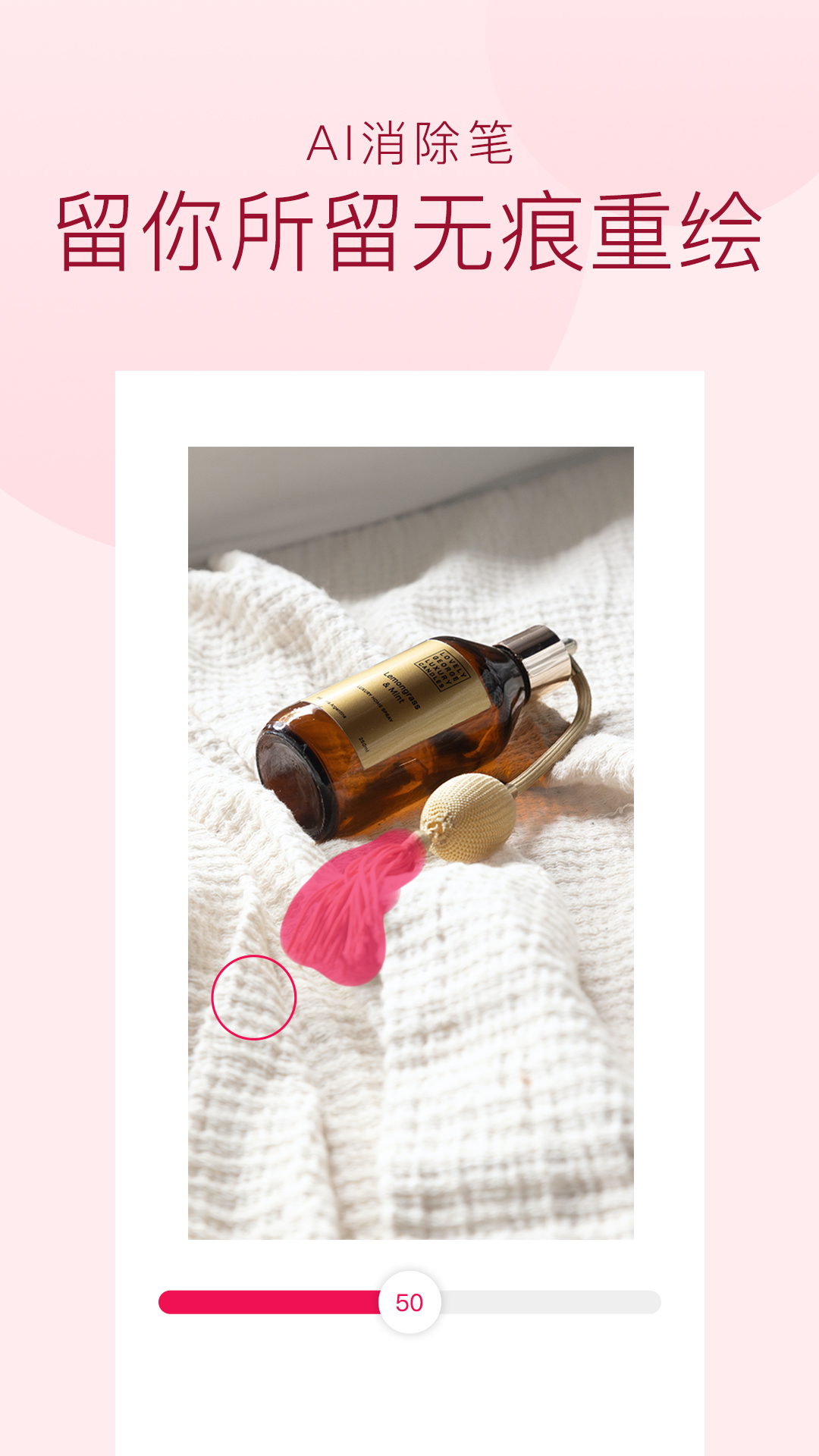 斩图APP提供AI消除笔功能,任意去除画面中不需要的内容。只需要涂抹希望抹掉的人和物等,画面会自动修复实现完整完美的效果。