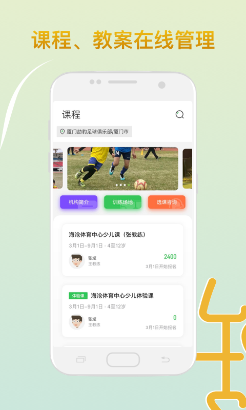 Ai练席 (AiLianXi)专业的少儿足球俱乐部运营方案,是学校,运动场馆,教练,家长的优先选择。强大的训练数据采集分析能力,专业的教练教案管理,运动器材管理,同时提供场地租赁等。