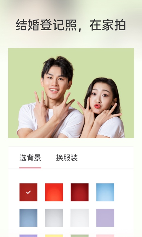 12色背景,除满足结婚登记照的红底/蓝底常规需求外,还增加了高级色和糖果色,可根据不同的使用场景任意切换。