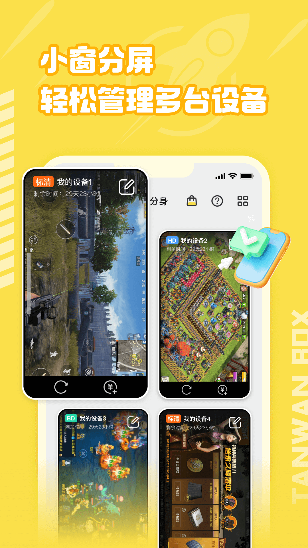 贪玩云分身,原贪玩世界,为用户提供游戏窗口化多开运行,多账号多软件管理更方便;稳定云手机服务,解放本地手机内存,24小时运行不掉线,玩游戏,更轻松。