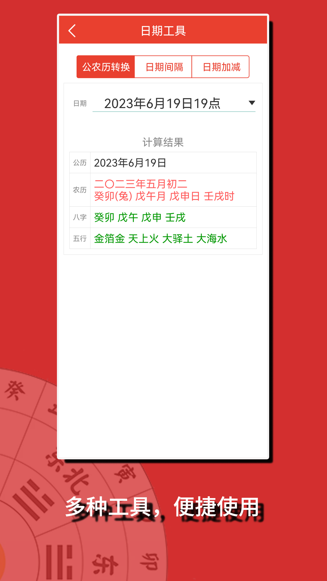 4 日期工具,提供公历太阳历阴历转换、日期间隔,日期加减。