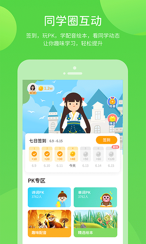 6. 同学圈:去签到,玩PK,学配音绘本,看同学动态,让你趣味学习,快乐成长