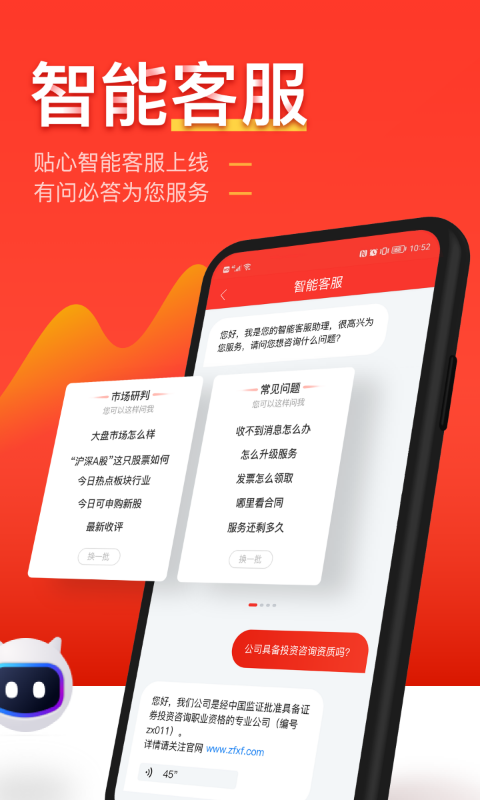 我们致力于持续为您提供全流程智能化投顾服务,让您的投资更高效。如您在使用APP过程中,有任何建议或遇到问题,可通过APP内在线客服、意见反馈、客服电话等方式联系我们。