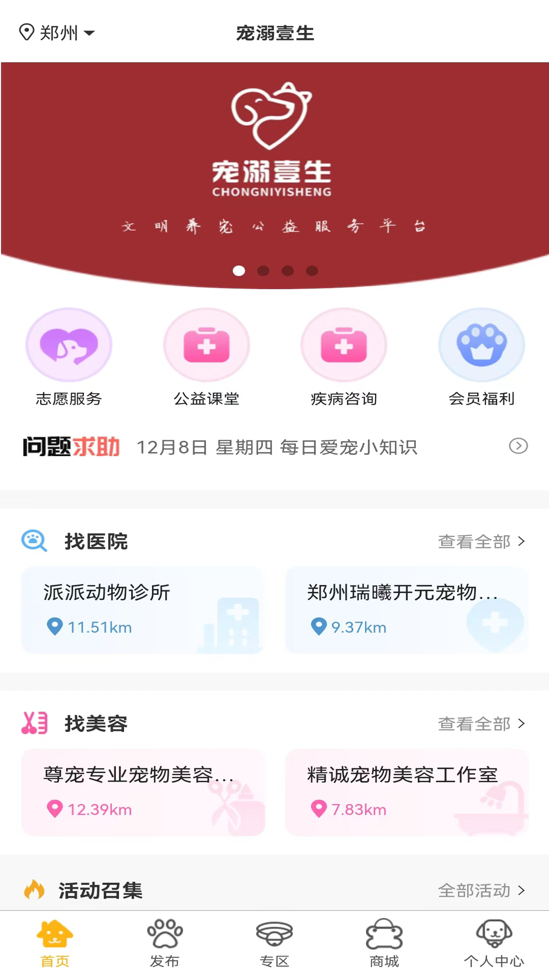 我来了!我是宠溺壹生,放心把您的问题交给我吧!我有强大的专家团队做后盾,有精准专业的宠物医院,可以提供爱心寻宠、领养宠物、宠物送养、宠物婚介等相关服务。我不仅是APP,更是宠物的成长社区,毛孩子们也可以有自己的朋友圈,还有很多有趣的线下活动等你来嗨!宠溺壹生还是一个公益平台,我们和河南广播电视台共同成立文明养宠公益联盟,还和黄帝故里基金会联合设立公益专项基金,并为您的爱宠提供公益血库、公益课堂和疾病救助等相关服务。