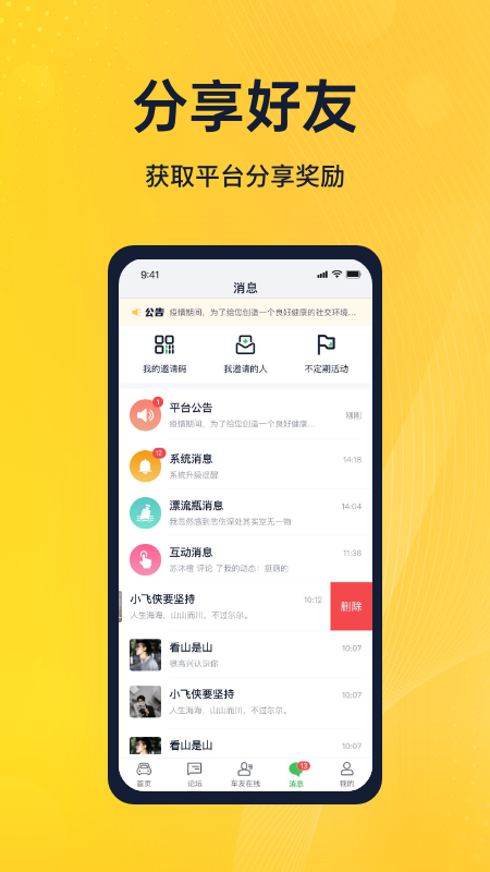 【车友在线】提供车友在线交流,比较投缘的车友可以自由聊天交友,同时也有同城、异性车友筛选功能,新增漂流瓶玩法,满足会员的社交需求。