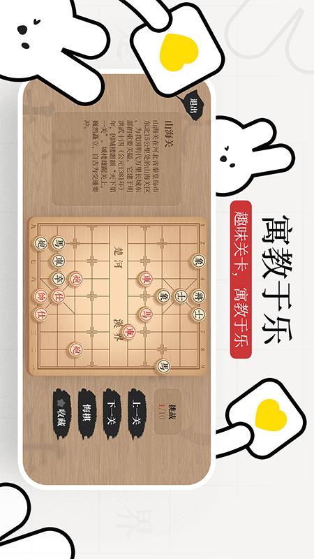- 单骑闯关:不同难度、海量的趣味挑战关卡,让孩子学以致用,在闯关过程中提升下棋水平。