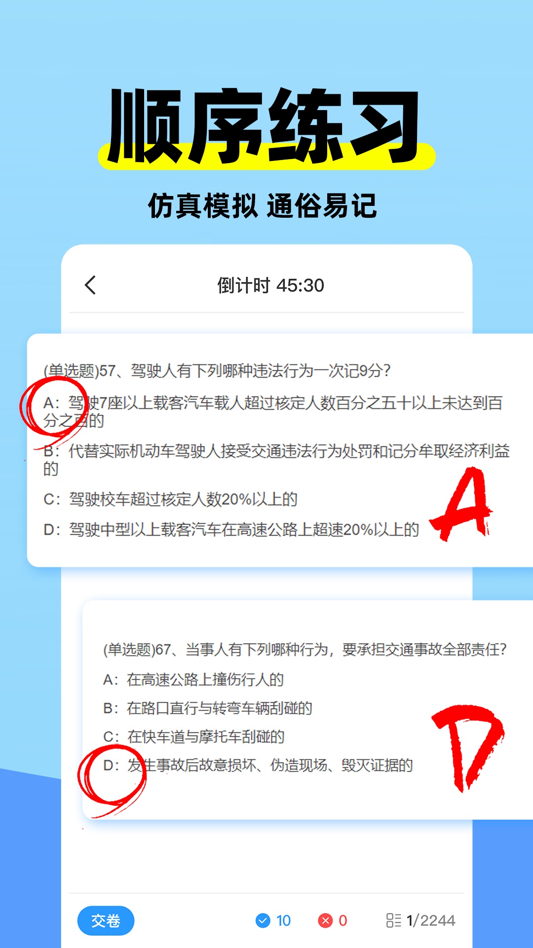 科目二练车模拟电脑版介绍:这款科目二练车模拟APP采用先进的虚拟现实技术,为用户提供高度逼真的驾驶环境和实景考场模拟,帮助用户反复练习倒车入库、侧方停车等技能,并熟悉考试流程和点位要求。此外,APP还精选了500道具有代表性的科目二理论知识题目,帮助用户巩固所学知识,提高解题能力。通过使用这款APP,用户可以在模拟环境中提升驾驶技能和理论知识水平,为实际考试做好充分准备。