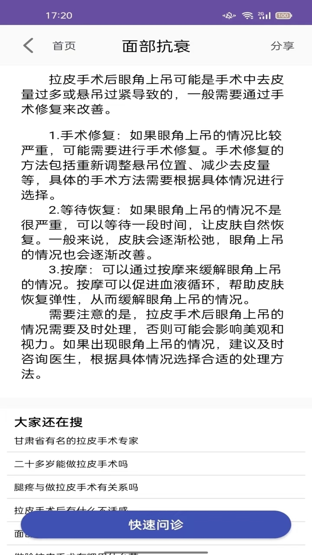 面部抗衰APP,主要提供面部抗衰服务(拉皮,线雕提升,眼周抗衰,嘴周抗衰)。通过整形手术可矫正上睑皮肤松垂,下眼袋,面部皮肤的皱纹,深层组织的松垂,目的是恢复面部年轻时的轮廓和动态。