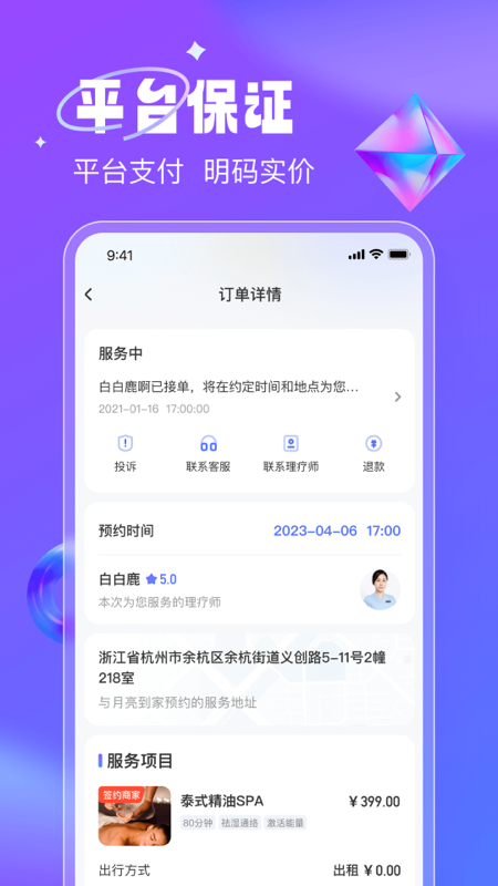 3、极速上门:我们会优先推荐距离最近的技师,目前服务已覆盖杭州,后续将陆续开通全国其他城市地区。