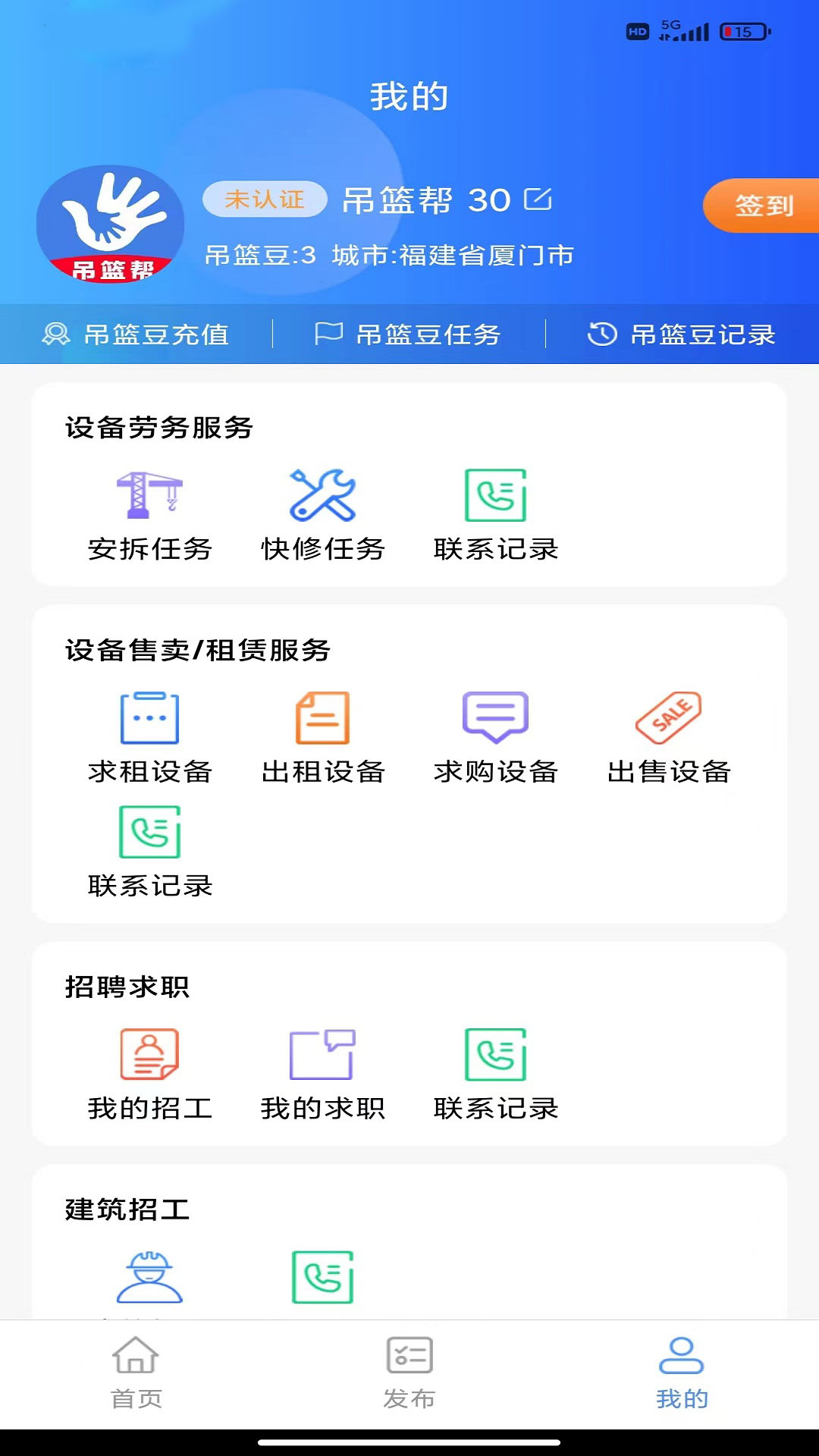 吊篮帮app是一款提供建筑行业的招工、找活资源信息发布的平台,用户可以发布招工信息,工友也可以在 里边找到好活,平台主要是一站式帮用户解决建筑机械、劳务用工的难题