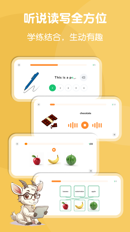 山羊英语APP是一款专注于提供英语实用能力的产品,主要是以AI技术与英语教学经验相结合。“商务英语”服务出海中小商户,在海外自媒体宣传商品信息的英语培训;“旅游英语”服务出境自由行的旅游爱好者,适用于各个场景与境外人士进行交流的英语培训;“剑桥英语”服务于成人学习实用的英语技能,以考代练,达到掌握英语的目的。