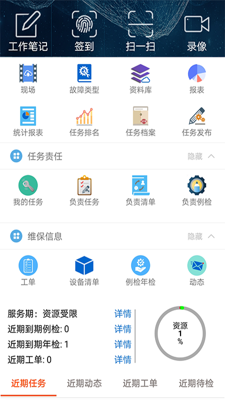 智慧电梯+维保管理移动端针对电梯维保单位,电梯工程公司对电梯安装,维修,日常保养等工作的需求,提供完善的电梯档案管理,维保现场视频/图片库,国标标准的电子工单,可视化的地图,详细的统计报表,闭环的维保任务管理。维保工作人员可以随时在互联网上与办公人员的协同办公,通过移动互联网随时可以访问云端系统资料;维保负责人全程监管维保过程,提高工作效率和简化维护工作流程。电梯维保人员通过共享维保资料,如工单,档案,任务等信息来协作完成电梯的维保任务,移动端APP接受平台的调度,对维保,任务指令进行响应。同时,平台会记录人员行为作为考核和管理的依据。