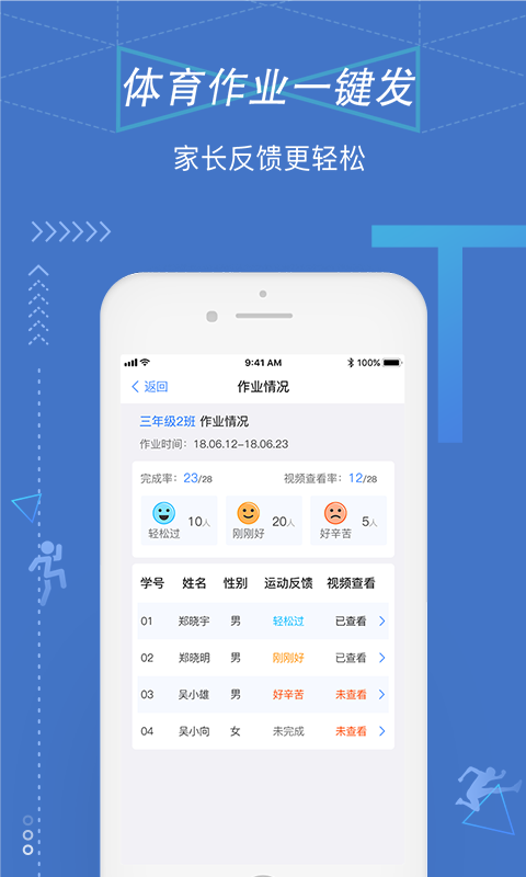 4、体育作业:针对学生个体特征,发布个性体育作业,督促学生课后锻炼;