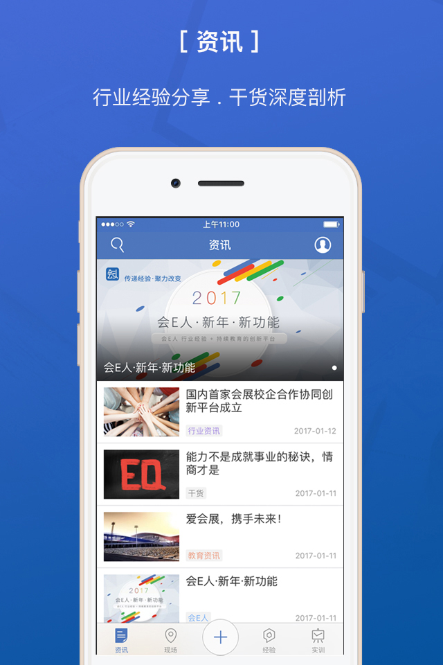 会E人APP(互联网+会展)主要是一款针对会展及活动营销行业的专业APP。致力于行业经验分享及现场资讯的整合,会E人(互联网+会展)APP通过平台展示并分享了公关活动策划与实施、媒体传播、影视制作、展览展示、科技互动,会展场地介绍以及国内的外创意灵感,为从业人员提供了充足的信息资讯的参考。帮助你更加的了解会展和活动营销行业。与此同时,将多年的行业经验转化成教学体系,提升会展教学的质量的同时为校内师生提供实训体系的辅助服务,并且包含会E人独立研发的实训教学课程及工具,对即将从事会展行业的学生有着极高的教学辅导意义。通过会展行业经验分享以达到,传递经验,聚力改变!