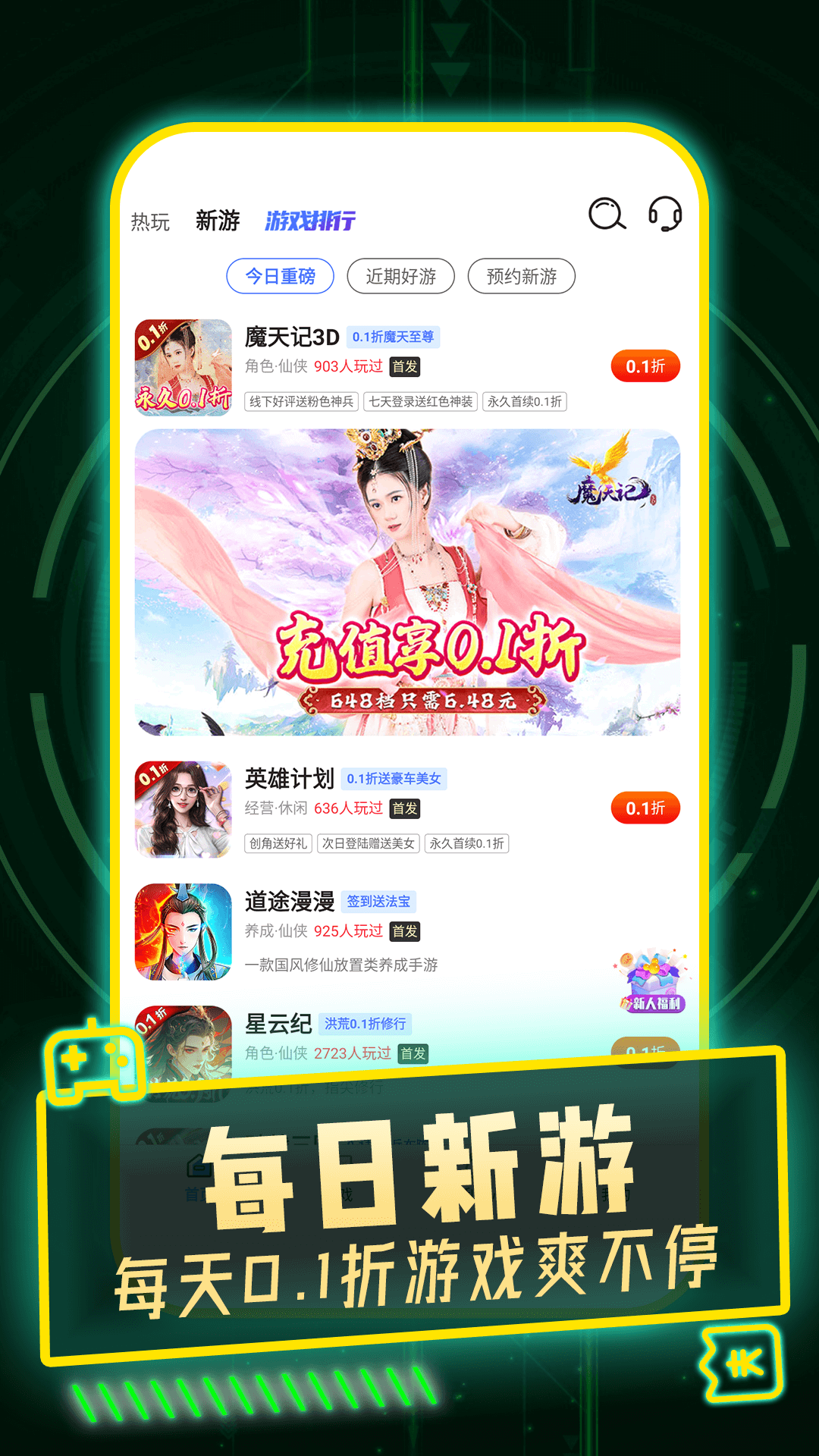 1、5000款手游自助0.1折充值,折扣号、满V号,氪金大神号!
