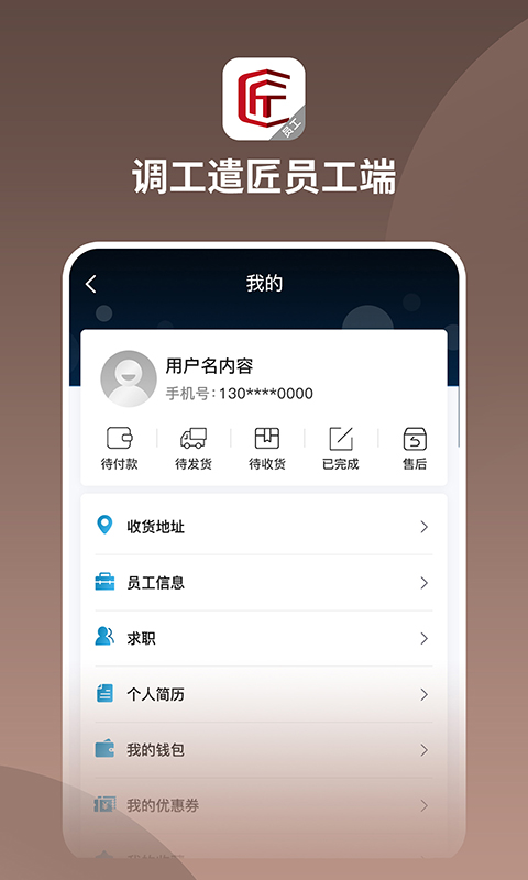 调工遣匠是一款为零距离对接技术人才与工业制造企业的商业化信息平台。该APP提供一站式服务,技术劳动者可线上填写简历并在可选工作地点接活,消除中间商差价,确保工资即时到账。服务于各类技术人才,拥有海量订单,保障报酬合理,设有劳动者商城,提供生活必需品,品种齐全、价格实惠、质量保证。让技术人才的技能得以变现,助力企业发展。