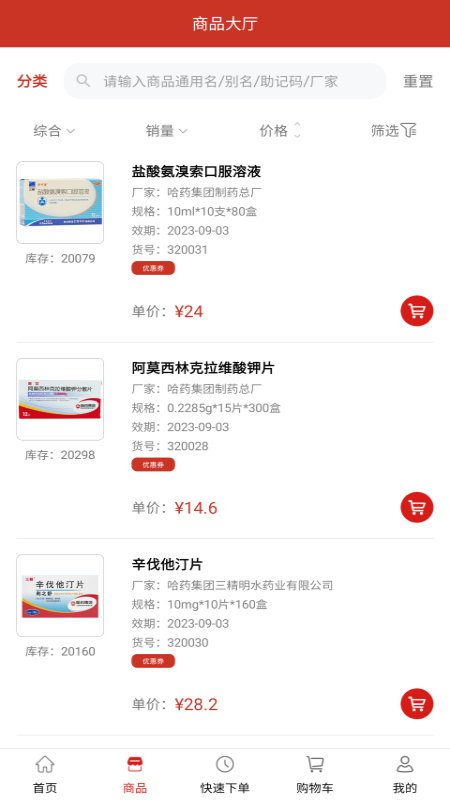 药纷采B2B药品批发平台,哈药集团医药有限公司药品分公司线上平台采货更便捷,药品质量有保障,为终端药店、诊所提供即时、便捷的在线药品采购服务。可根据药品分类或药品名称搜索相关的药品信息、图片等,更为用户推荐相关的药品或同类药品,可根据历史订单一键加入购物车直接下单或继续添加药品,查看常购清单,下单后可查看订单物流信息等,领券结算更优惠。