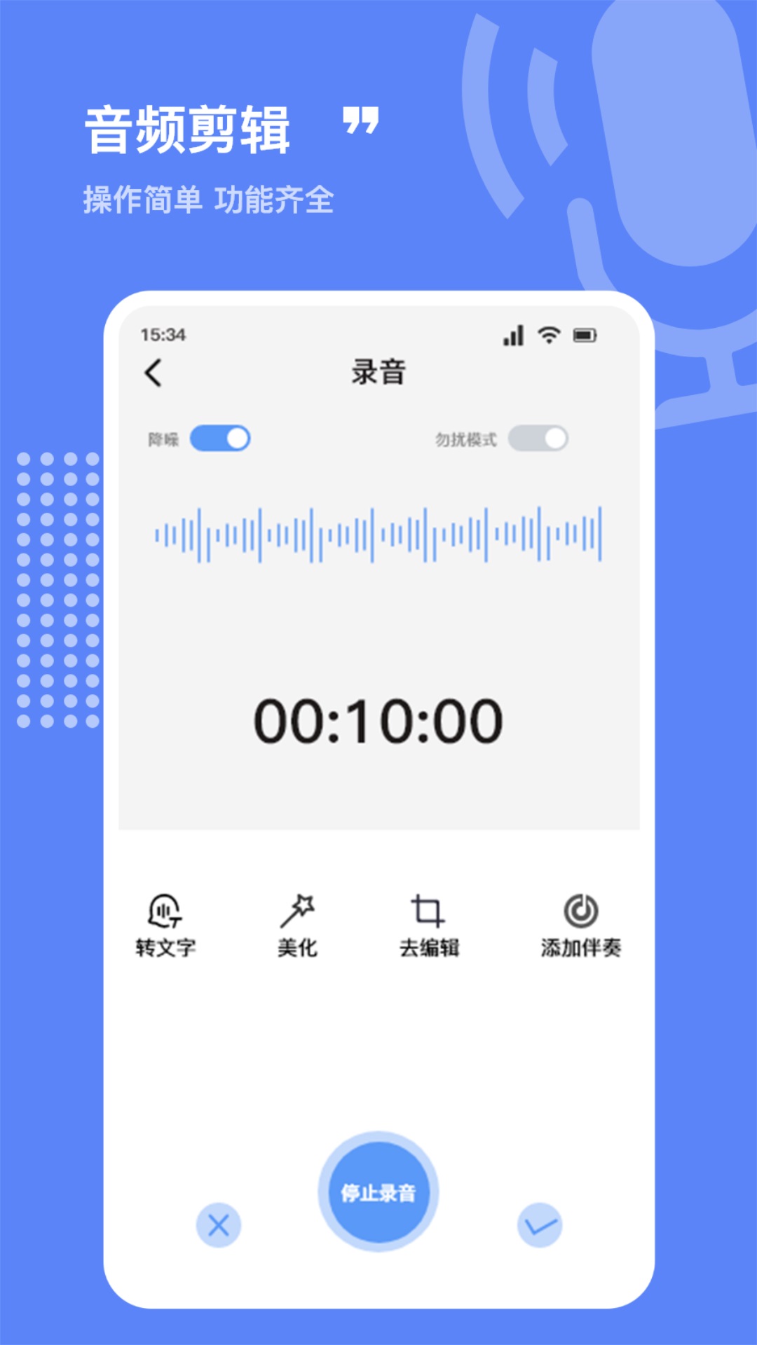 录音剪辑:支持多段选择、灵活剪辑 ;