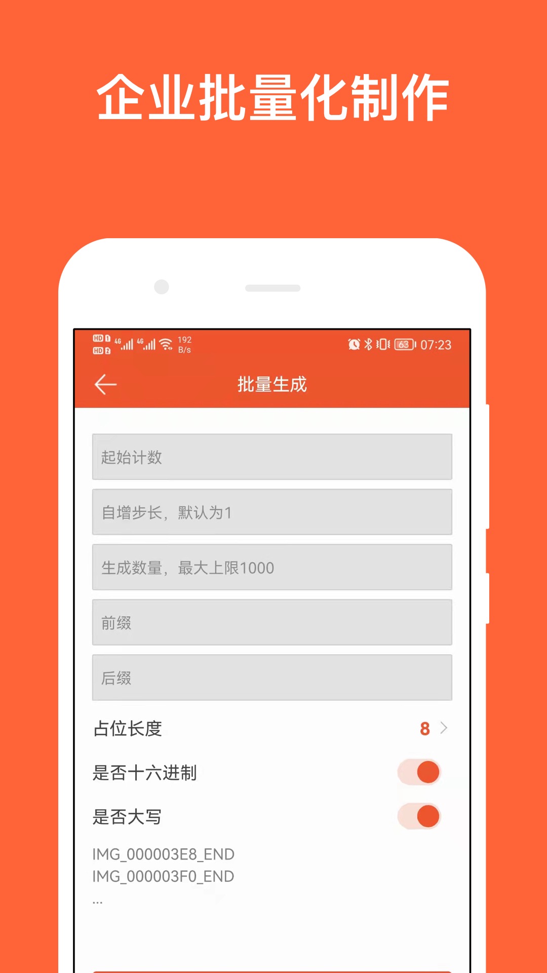 我们支持一键快速生成二维码,为企业级工业产品制作二维码保驾护航,文件名自动对应内容,生成1000个二维码在不到一分钟时间内即可完成,可通过分享的方式压缩后发送到桌面