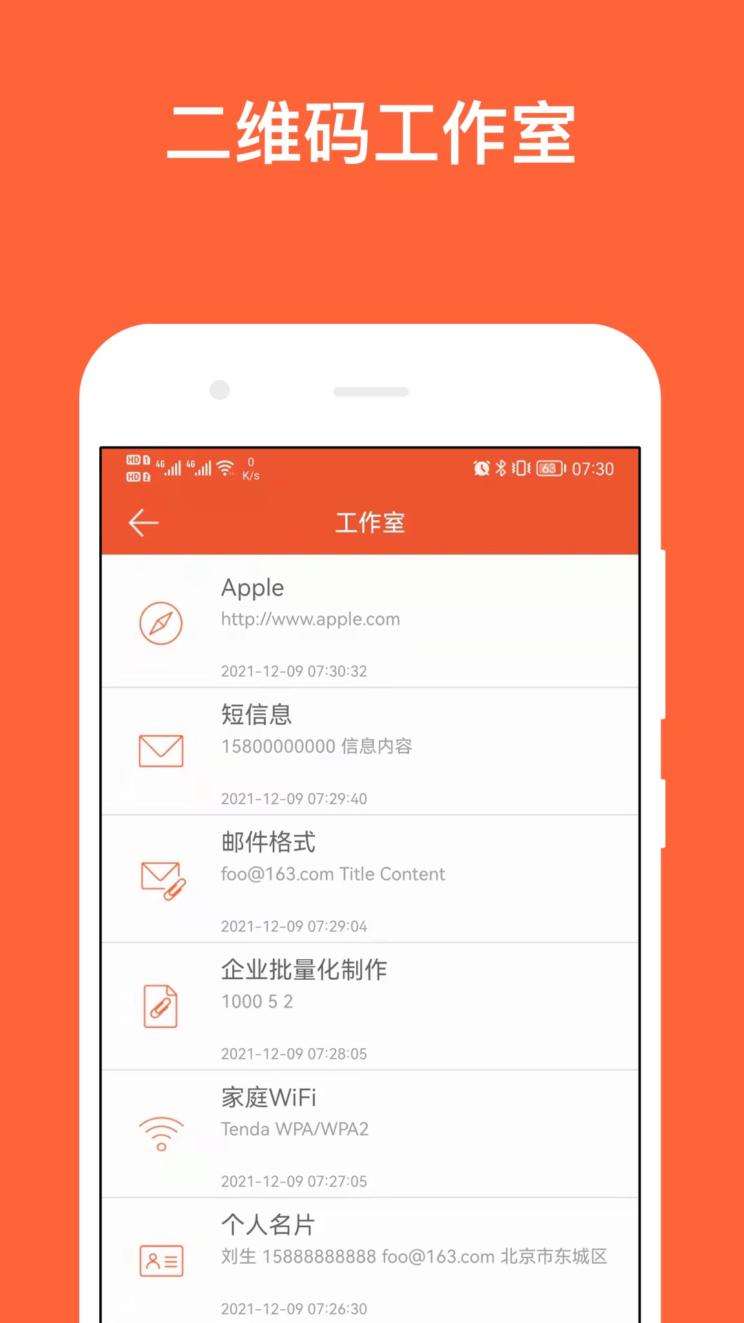 我们可以将二维码等相关信息保存到工作室,可以随时查看和进行二次编辑.