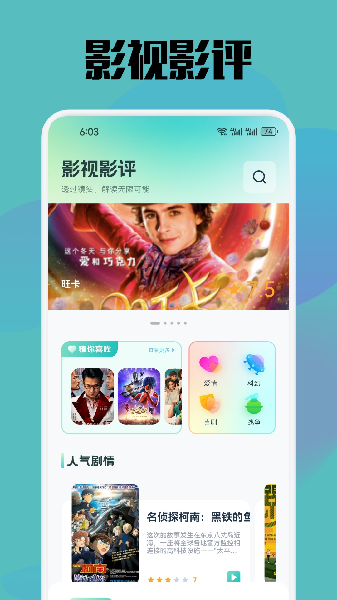 一款手机影视解说服务应用,网罗经典热门影视资源,精彩解说看过瘾。动作、喜剧、悬疑、励志、爱情、剧情、科幻、战争影视主题总有你感兴趣的。详细的影视明星介绍,让你快速了解影视明星。