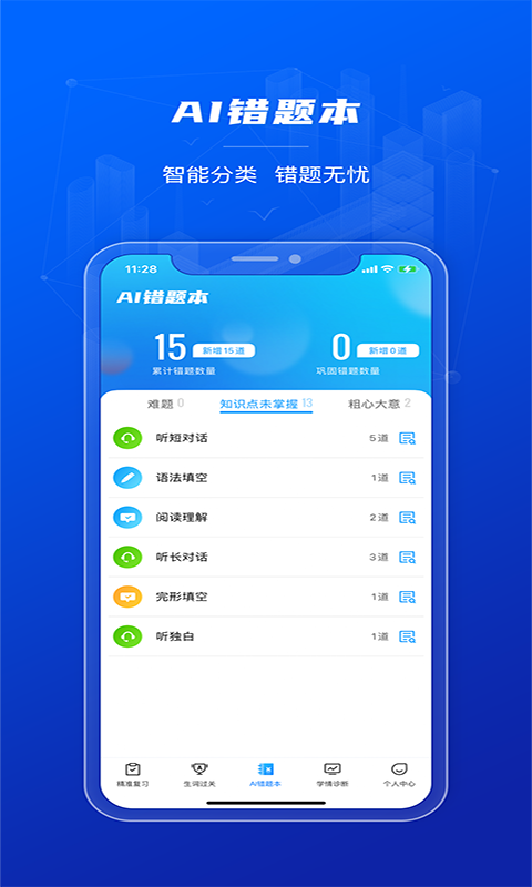 小鸽AI英语电脑版介绍:小鸽AI英语是一款专为高中生打造的个性化英语辅导APP。它通过精准复习、生词过关、AI错题本和学情诊断四大核心功能,帮助学生克服学校课堂学习的局限性,提升英语能力和考试成绩。APP根据学生的个人认知水平推荐合适的学习资料,全面分析并推荐最优的听力阅读维度生词,自动收录和分析错题,并结合错因推荐训练方案。此外,它还能全面分析学生的学习情况,帮助学生简单快捷地了解自身的进步。