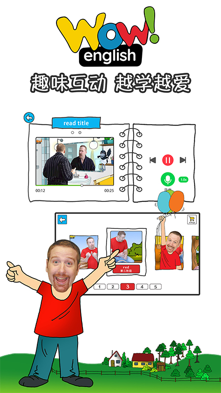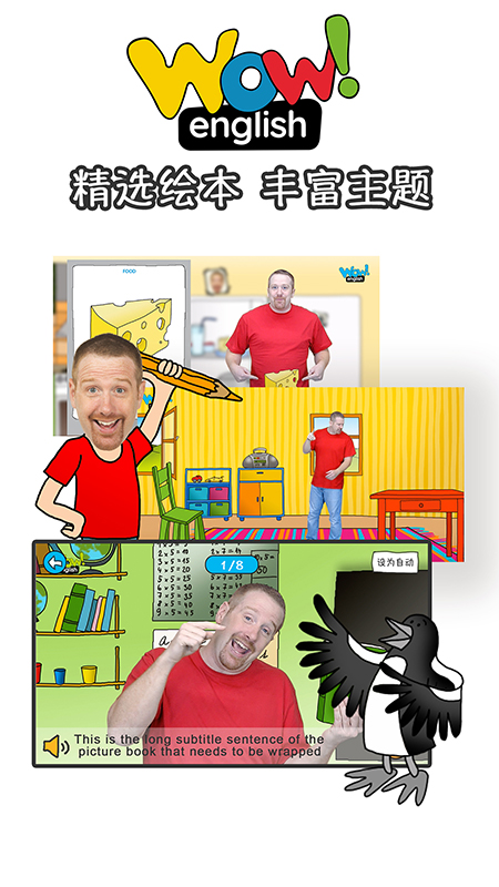Wow English App拥有英国公司Wattsenglish Ltd.的《Wow English》动画课程正版授权。《Wow English》动画课程,视频里面的核心角色Steve和小鸟Maggie在幼儿英语和小学英语中享有盛名,是英美国家最爱品牌之一。这里缔造了一个孩子们都非常喜欢的学习英语的多彩世界,这里的每一个视频片段的内容都是围绕着一个主题展开,从头到尾都是有趣的歌曲和故事,从而调动了孩子的学习积极性。视频中的人物Steve是一个深受孩子们喜欢的、地道的英语老师!