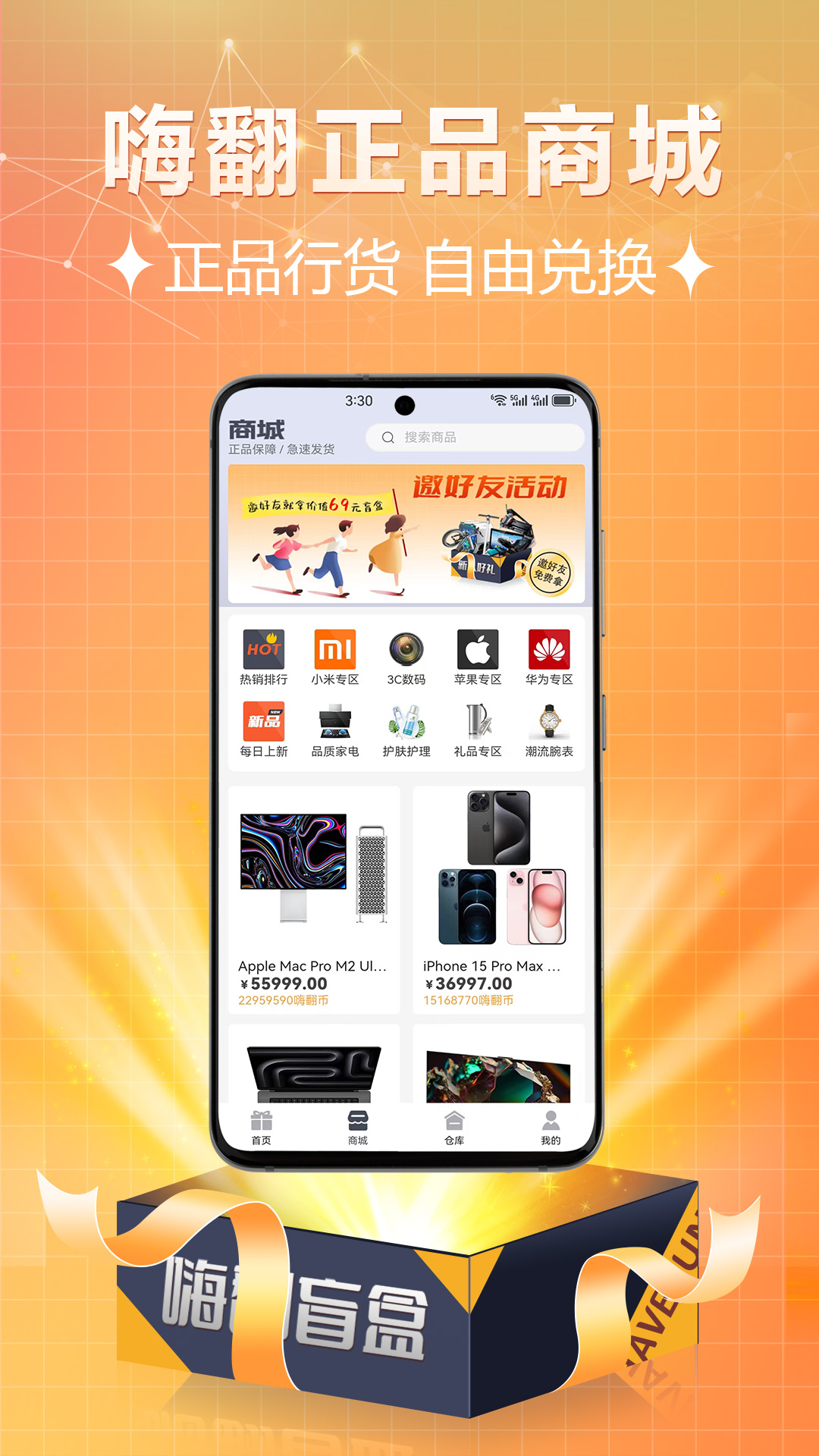 嗨翻盲盒电脑版介绍:嗨翻盲盒是一款兴趣电商APP,通过哈希算法确保公平公正的概率抽取。用户可以购买各种类型的盲盒,从家用电器、数码产品到高端手机、电动车等,都能在这里找到。每个盲盒都设有保底商品,价值不低于开盒价格,并且拥有超高爆率。不喜欢开到的商品可以随时在商城兑换其他心仪的物品。所有商品都是全新正品,一键提货,方便快捷。