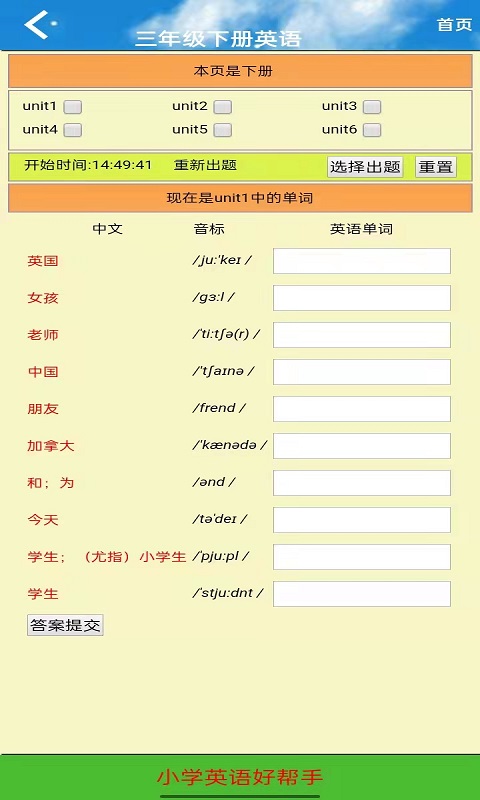 2、所有英语课文单词的在线自测。