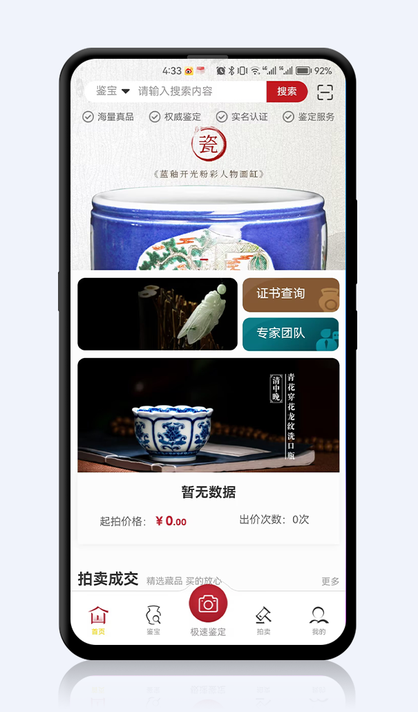 鉴拍宝是应用于古玩艺术品收藏行业的互联网平台,为古玩行业从业人员提供知识分享和社交互动功能,帮助收藏爱好者更好的学习古玩知识、鉴赏艺术品真假和了解市场行情等。