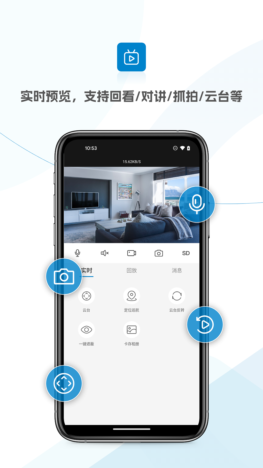 将实时的监控画面显示的Android移动设备上并对设备进行预览操作